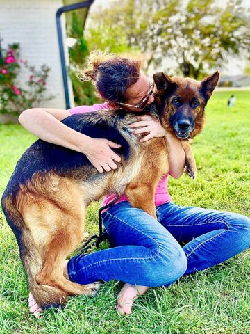Meet Luna! She is fun, sweet, kind, energetic, and loves to play with water. She is a sweet girl who loves to be inside but will also take you up for a run when you need it. She is a traditional GSD .