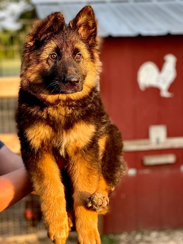 Ms. Yellow promises to be a beautiful Black, Red, and Tan Plush Coat German Shepherd. Ms. Yellow is an amazing combination of her mama and papa. She has a very mellow and laid back temperament and loves to be babied all day long! She enjoys sitting on your lap as she drapes over you. She is sweet, gentle, loving, caring, and definitely a very low key personality. She loves to be petted and will stand by your side all day, every day!